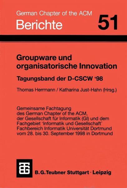 Gemeinsame Fachtagung des German Chapter of the ACM, der Gesellschaft für Informatik (GI) und dem Fachgebiet 'Informatik und Gesellschaft' Fachbereich Informatik Universität Dortmund vom 28. - 30.9.1998 in Dortmund Die Deutsche Tagung zu Computer Supported Cooperative Work (D-CSCW 98) verfolgt in 1998 im wesentlichen zwei Ziele: ==> Die Wechselwirkung zwischen organisatorischer Innovation und den Potentialen Computergestützter Gruppenarbeit soll beleuchtet werden ==> Die Verschränkung von Praxis und Wissenschaft. Die Forschung zu CSCW befaßt sich mit der Frage, wie sich Kommunikation, Kooperation und Koordination durch Computersysteme geeignet unterstützen läßt. Die hierzu benötigte Software wird auch als Groupware bezeichnet. CSCW ist ein interdisziplinäres Gebiet. Es sind nicht nur Erkenntnisse aus der Sicht der Informatik gefordert, sondern auch aus der Perspektive solcher Disziplinen, die sich mit den Eigenschaften von Menschen und Gruppen befassen, die sich mit Organisationsanalyse und -gestaltung auseinandersetzen oder auch soziale, betriebswirtschaftliche, rechtliche und andere Kriterien berücksichtigen.