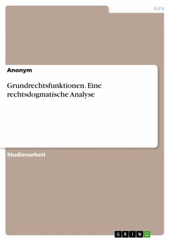 Studienarbeit aus dem Jahr 2016 im Fachbereich Jura - Öffentliches Recht / Staatsrecht / Grundrechte, Note: "sehr gut" (16 Punkte), Ludwig-Maximilians-Universität München, Sprache: Deutsch, Abstract: Diese Seminararbeit beinhaltet eine rechtsdogmatische Analyse der Grundrechtsfunktionen mit Bezügen zur Charta der Grundrechte der Europäischen Union und zur Europäischen Menschenrechtskonvention (im Rahmen eines Seminars, Staatsexamen Jura in Bayern, 2016, Note: "sehr gut", 16 Punkte).