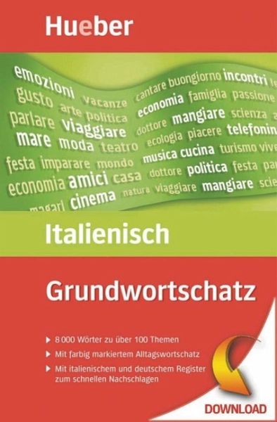 Niveau A1 bis B2 Dieser thematische Lernwortschatz für Anfänger bietet rund 8.000 Wörter in 18 Haupt- und über 100 Unterkapiteln und eignet sich zum gezielten und systematischen Vokabellernen sowie zum schnellen Nachschlagen. Anwendungsbeispiele und typische Zusammenhänge verdeutlichen den Gebrauch der Stichwörter. Zusätzliche Info-Boxen weisen auf Besonderheiten im Sprachgebrauch, grammatische Regeln oder landeskundliche Informationen hin. Ein zweifarbiges und lernerfreundliches Layout ermöglicht ein optimales Lernen und Wiederholen in beide Richtungen (Italienisch-Deutsch und Deutsch-Italienisch). - Mit Lautschrift zur korrekten Aussprache. - Mit einer Auflistung der allerwichtigsten italienischen Wörter zum Nachschlagen. - Mit farbig markiertem Alltagswortschatz. - Mit zweifachem Register (Italienisch und Deutsch) zum komfortablen Nachschlagen. Das Werk eignet sich gleichermaßen für Schüler der Sekundarstufe I, Lernende in der Erwachsenenbildung und Selbstlerner. Ideal auch zur gezielten Vorbereitung auf Schülerarbeiten, berufliche Aufgaben, Mediennutzung und den Urlaub.