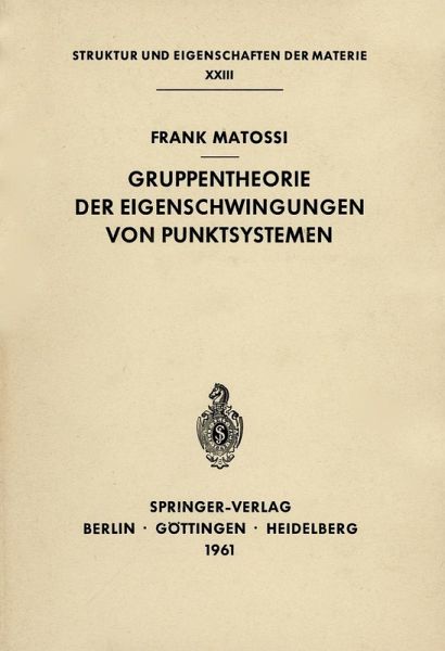 1. Einleitung.- I. Gruppentheorie der Molekularschwingungen.- 2. Grundbegriffe.- 3. Einige gruppentheoretische Theoreme.- 4. Symmetrieelemente als Gruppenelemente.- 5. Symmetriegruppen von Molekülen und Kristallen.- 6. Vollständigkeit des Systems der Punktgruppen.- 7. Darstellung von Gruppen durch Schwingungstypen.- 8. Charaktere von Schwingungstypen.- 9. Theorie der Gruppencharaktere.- 10. Abzählung der Eigenschwingungen.- 11. Auswahlregeln für Grundschwingungen.- 12. Auswahlregeln für Ober- und Kombinationsschwingungen.- 13. Fragen der Anwendung.- 14. Geschichtlicher Überblick.- II. Berechnung molekularer Schwingungsfrequenzen.- 15. Theorie der kleinen Schwingungen.- 16. Transformation auf Hauptachsen.- 17. Kraftsysteme, Symmetriekoordinaten.- 18. Reduktion auf irreduzible Gruppendarstellungen.- 19. Anwendung auf Moleküle der Form XY2, X3, X2Y3, ZX2Y3.- 20. Anwendung auf Kristalle (Wurtzit-Gitter, lineare Kette).- 21. Schwingungen verknüpfter Punktsysteme.- 22. Kurze Zusammenfassung der Methode.- 23. Bemerkungen zur Kritik der Gitterdynamik.- Namenverzeichnis.
