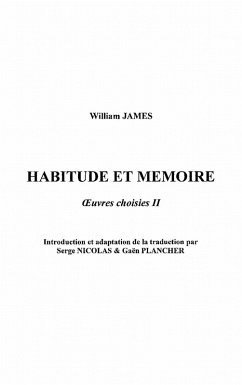 William James est une figure centrale de la psychologie. C'est dans son ouvrage Principles of psychology (1890) qu'il va exprimer les idees les plus novatrices. L'ouvrage propose ici concerne les themes de l'habitude et de la memoire, traites chez James d'un point de vue psycho-physiologique. La these sur l'habitude est de considerer celle-ci du point de vue physiologique comme un chemin familier et bien fraye que suivent facilement les excitations nerveuses.