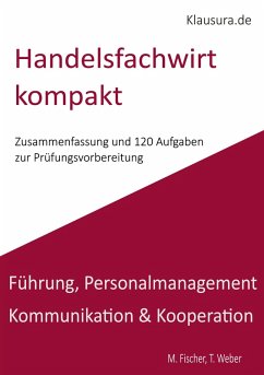 Dieses Buch wurde von erfahrenen Dozenten zusammengestellt, die über viele Jahre Erfahrung in der Ausbildung und Prüfungsvorbereitung zum Geprüften Handelsfachwirt IHK verfügen. Die hier erstellte Zusammenfassung und die anschließenden Aufgaben werden von den Dozenten auch in ihren Unterrichtseinheiten verwendet und bilden somit eine fundamentale Grundlage für Ihre persönliche Prüfungsvorbereitung. Anhand des Rahmenstoffplans des DIHK werden die einzelnen Kapitel nach Schwerpunkten zusammengefasst und am Ende des Buches mit zahlreichen, klausurrelevanten Aufgaben, inklusive Lösungen, ergänzt. Es soll Ihnen helfen sich kompakt mit den Schwerpunkten des Faches "Führung, Personalmanagement, Kommunikation & Kooperation" auseinanderzusetzen und mit dem Lösen der Aufgaben Sicherheit zu erlangen. Weitere Unterlagen zur Prüfungsvorbereitung, in Form von Aufgaben und Zusammenfassungen finden Sie unter klausura.de. Wir wünschen Ihnen viel Spaß beim Lösen der Aufgaben und viel Erfolg bei der anstehenden Prüfung