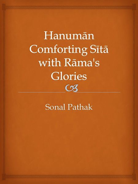 Hope arrives in the form of Hanuman, the fearless messenger (duta?) of Rama. This Vanara (forest-dweller), acting out of pure love, successfully crossed the great ocean and infiltrated Lanka, relying on his powerful capability to accomplish the impossible mission. Hanuman is tasked with delivering comforting words to Sita.