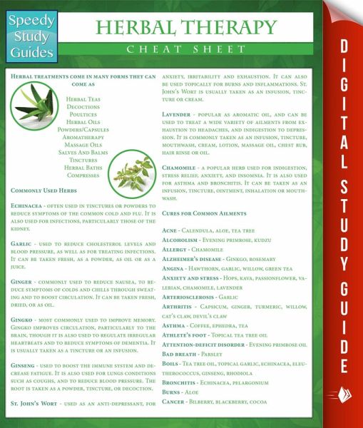 Herbal therapy is the treatment of illnesses and other ailments with natural herbs and related remedies. Such therapy generally rejects traditional remedies such as compounded pharmaceuticals. The reason being that many believe that herbal therapy is more potent in its treatment of the same ailments as traditional pharmaceuticals. A chart or cheat sheet would be able to compare the herbal remedy with its pharmaceutical counterpart.