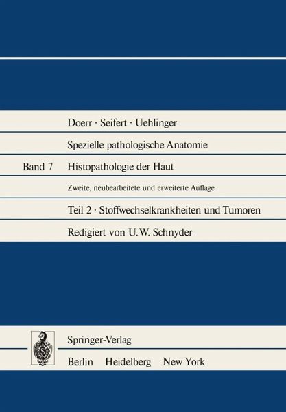 Stoffwechselkrankheiten der Haut.- A. Kohlenhydratstoffwechsel.- B. Fettstoffwechsel.- C. Eiweißstoffwechsel.- D. Purin- und Pyrimidinstoffwechsel.- E. Porphyrinstoffwechsel.- F. Calciumstoffwechsel.- G. Pigmentstoffwechsel (exkl. Melanin).- H. Cutane Mucinosen.- J. Mucopolysaccharidosen.- Tumoren der Haut.- A. Epidermoide Tumoren.- B. Adnexoide Hauttumoren.- C. Basaliome.- D. Fehl- und Neubildungen des melanocytären Systems.- E. Neurogene Hauttumoren.- F. Mesenchymale Hauttumoren.- Literatur.- Fehl- und Neubildungen der Blut- und Lymphgefäße.- A. Angiektatische Naevi.- B. Angiokeratotische Naevi.- C. Angiomatöse Naevi und Neubildungen.- D. Glomustumoren (Angiomyoneurome, Glomangiome).- E. Maligne Tumoren der Blut- und Lymphgefäße.- Literatur.- Lymphoreticuläre Hyperplasien und Neoplasien der Haut.- A. Allgemeiner Teil.- B. Spezieller Teil.- Literatur.- Myeloproliferative Erkrankungen der Haut.- A. Allgemeiner Teil.- B. Spezieller Teil.- Literatur.- Mastzellenkrankheiten.- Mastocytose und maligne Mastzellenreticulose.- Symptome der Histamin- und Heparinwirkung.- Literatur.