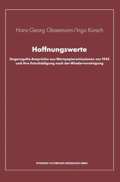 1 Einleitung.- 2 Die Währungsumstellung, der Lastenausgleich und die Wertpapierbereinigung.- 3 Die ungeregelten Ansprüche.- 4 Die ungeregelten Ansprüche aus festverzinslichen Wertpapieren.- 5 Die ungeregelten Ansprüche aus Aktien und Anteilscheinen.- 6 Betrachtungen zu einer Regelung von Ansprüchen aus Hoffnungswerten nach der Wiedervereinigung von 1990.- 7 Übersichten der ungeregelten Hoffnungswerte - Festverzinsliche Wertpapiere.- 8 Übersichten der ungeregelten Hoffnungswerte - Aktien und Anteilscheine.- 9 Übersicht gesetzlicher Vorschriften und Verordnungen.- 10 Zeittafel 1944-1990.- 11 Adressen für Auskünfte.- 12 Literaturverzeichnis.- 13 Exkurs: Hoffnungswerte als Sammlerstücke.