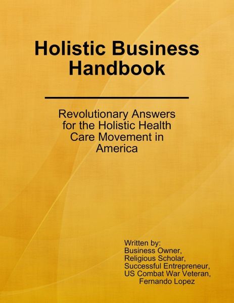 This book was specifically written for those interested in the Complementary and Alternative Medical Community and desire a better understanding of how the holistic health industry in America functions as a business entity. The Holistic Business Handbook was designed for the reader's convenience. With due diligence this text was reduced to a simplified summary of the demographics of customers, holistic business theories, common ethnocentric misconceptions, and the rising list of competitors entering into the Complementary and Alternative Medical (CAM) industry. The handbook will discuss some of the present day statistics, published by the National Center for Complementary and Integrative Health (NCCIH, formerly the National Center for Complementary and Alternative Medicine [NCCAM]), laws and guidelines from the Food and Drug Administration (FDA), and definitive terms from the White House Commission on Complementary and Alternative Medicine Policy.