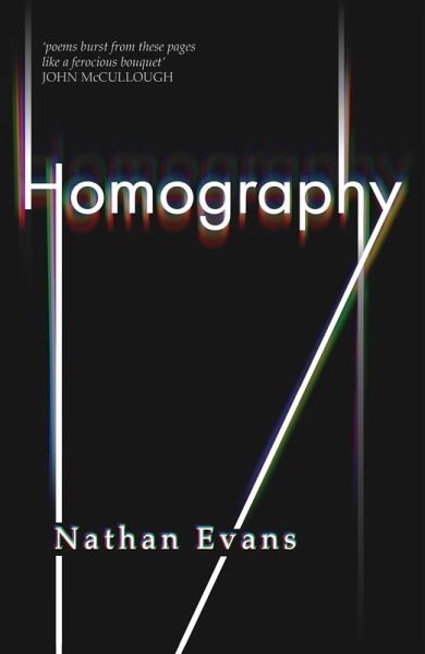 Homography: mapping multiple perspectives of a single subject; words with the same form but different meanings (see gay, story); homosexual history approached through autobiography; projective transformation (from personal to political plane). Evans uses his own relationships-sexual and familial, chosen and biological-to explore queer heritage. In this collection you'll happen upon ancestors from antiquity to present day including Narcissus and Derek Jarman, as well as iconic venues like the Royal Vauxhall Tavern. There is imagery drawn from the natural world, and from to the underworlds of fetish and clubbing-a diversity echoed in forms concrete and classical. There is also shame, and there is trauma, but always leavened by fierce humour and hope for our future. This bold and beautiful third collection from Polari Prize longlisted poet Nathan Evans features poems published by Royal Society of Literature, Muswell Press, Broken Sleep and Fourteen Poems. It is edited by TS Eliot Prize winner Joelle Taylor and published for LGBTQIA+ History Month 2026.