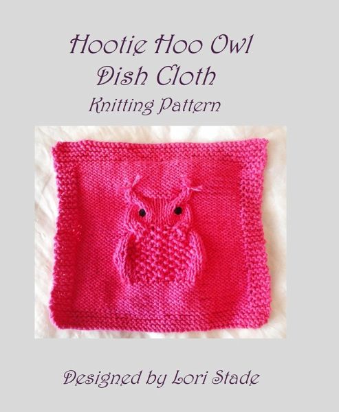 This is a dish cloth knitting pattern with a large owl design. The dish cloth instructions are written with step-by-step instructions. Cotton worsted in solids show the design best. The finished measurements are approximately 10" by 10" when size 6 needles are used.