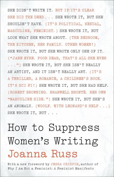 Are women able to achieve anything they set their minds to? In How to Suppress Women's Writing, award-winning novelist and scholar Joanna Russ lays bare the subtle-and not so subtle-strategies that society uses to ignore, condemn, or belittle women who produce literature. As relevant today as when it was first published in 1983, this book has motivated generations of readers with its powerful feminist critique."What is it going to take to break apart these rigidities? Russ's book is a formidable attempt. It is angry without being self-righteous, it is thorough without being exhausting, and it is serious without being devoid of a sense of humor. But it was published over thirty years ago, in 1983, and there's not an enormous difference between the world she describes and the world we inhabit."-Jessa Crispin, from the foreword"A book of the most profound and original clarity. Like all clear-sighted people who look and see what has been much mystified and much lied about, Russ is quite excitingly subversive. The study of literature should never be the same again."-Marge Piercy"Joanna Russ is a brilliant writer, a writer of real moral passion and high wit."-Adrienne Rich
