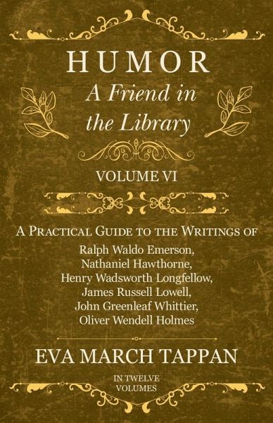 Eva March Tappan's "A Friend in the Library" series is a comprehensive guide to the writings of six seminal American writers, including Ralph Waldo Emerson, Nathaniel Hawthorne, Henry Wadsworth Longfellow, James Russell Lowell, John Greenleaf Whittier, and Oliver Wendell Holmes. In volume six, Tappan examines humour, looking at instances of comedy and wit in the works of these writers, as a well as looking for other clues as to how they view the concept in general. Highly recommended for students of American literature. March Tappan (1854 - 1930) was an American author and teacher. Other notable works by this author include: "Adventures & Achievements" (1900), "Poems & Rhymes" (1900), and "In the Days of Queen Elizabeth" (1902). Many vintage books such as this are increasingly scarce and expensive. It is with this in mind that we are republishing this volume now in an affordable, modern, high-quality edition complete with a specially-commissioned new biography of the author. This book was first published in 1909.