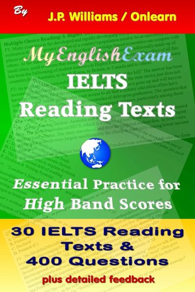 > Multiple Choice Reading provides 20 texts & questions with detailed feedback on why answers are right or wrong, offers advice on how to approach questions, details common mistakes and highlights essential vocabulary. Most IELTS Reading material fails to give you the detailed feedback that you really need to improve your Reading skills. This digital book from MyEnglishExam.com corrects this failing. > Full IELTS Reading offers 10 passages that include ALL the different types of questions, namely skimming exercises, multiple choice, true/false/not given, vocabulary, cloze exercise and inferencing. Once again detailed feedback is given. You are shown where you need to look in the texts for the answers and are given in-depth explanations of those answers. This book is specifically aimed at those who are serious about their IELTS exams and determined to reach their goal of going on to further academic studies or qualifying for entry to another country.