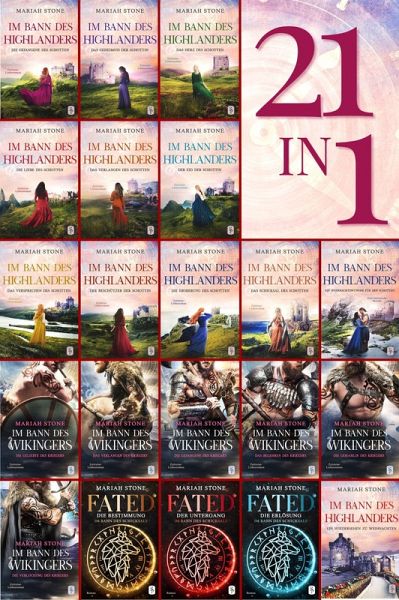 Jetzt nur für kurze Zeit: Die größten Liebesabenteuer des Nordens - 21 Romane in einem einzigen Megabundle! 21 Romane. 3 Serien. 1 Liebe, die Jahrhunderte überdauert. Über 4.500 Seiten voller Leidenschaft, Gefahr und Hingabe - von den schottischen Highlands über die stürmischen nordischen Meere bis in die moderne Welt. Das erwartet dich: Moderne Frauen. Mächtige Krieger. Schicksalhafte Liebe. Im Bann des Highlanders - 12 Romane, 3 Clans, 1 schicksalhafte Zeitreise. 10 Frauen und Männer stürzen aus der Gegenwart mitten ins raue Mittelalter - und in die Arme gefährlicher Highlander. Inklusive Weihnachts-Special und Bonus-Novelle. Perfekt für Fans von Outlander! Im Bann des Wikingers - 6 sinnliche Wikinger-Liebesgeschichten. Wenn moderne Frauen auf heißblütige Alpha-Krieger treffen, geraten nicht nur Welten, sondern auch Herzen ins Wanken. Mit exklusivem Serienepilog! Im Bann des Schicksals - 3 Romantasy-Winkinger-Zeitreise-Romane. Eine Ermittlerin jagt einen gefährlichen Milliardär - und entdeckt ihre wahre Bestimmung. Vergangenheit trifft Gegenwart in einer Geschichte voller Magie, Lust und Gefahr. Zum ersten Mal: Alle 21 Bestseller-Romane von Mariah Stone in einem Band - das komplette Zeitreise-Universum, das tausende Leserinnen begeistert hat. Band 1 der Reihe "Sündige Herzen - Die Sammlereditionen". Erlebe das gesamte Universum der Highlander, Wikinger-Zeitreisen - nur für kurze Zeit!