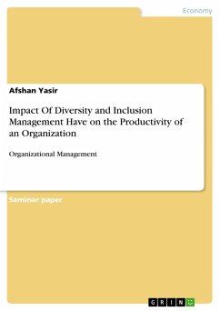 Seminar paper from the year 2018 in the subject Business economics - Business Management, Corporate Governance, grade: A, University of Balochistan (Institute of Biochemistry), course: Biotech, language: English, abstract: This study focuses on the effect of inclusion and diversity practices on organisational output and efficiency. The change of the demographics of the workforce by globalization, fluctuations in the economy, and pressure for competitiveness, organizations are management globally paying importance to diversity as a critical business need. This paper looks into the issue of the working teams in organisations cross section by; attitude, language and skill in relation to their contribution to their organisations' productivity. It emphasises that these differences have to be effectively managed in order to promote sharing of knowledge to increase productivity through social interaction. Research on DMP has shown mixed effectiveness that has been stated here, this shows the importance of the organization to accept and manage diversity fully to realize the benefits of diversity. The study also responds to a belief that absence of diversity must reduce organizational performance standards. But, it underscores the importance of that timely, strategically driven focus on, and dedication to, the participation of diversity in improving employee morale, their attendance, and performance, among other benefits that organizations can get. Based on the study it goes further to being evident that wherever minority and diversity are embraced as a policy at the workplace, the magnitude of innovation, effectiveness of decisions made, and performance of business organization is always higher. However, the study also acknowledges the various difficulties of achieving the optimisation of applicants from diverse backgrounds, demanding that managers build a separate strategy for attracting and encouraging the best employees and at the same time, maintain competitive edge.