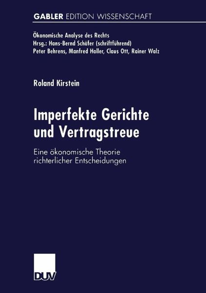 Zivilgerichte haben die Aufgabe, Vertragstreue durchzusetzen. Es ist jedoch nicht selbstverständlich, dass Zivilgerichte die Einhaltung von Verträgen sichern, denn richterliche Fehler und hohe Prozesskosten können effektiven Rechtsschutz verhindern. Roland Kirstein analysiert mit Hilfe eines spieltheoretischen Modells, unter welchen Bedingungen ein Zivilgerichtssystem zu Vertragstreue motivieren kann. Insbesondere müssen Gerichte bereits im Vorfeld einer Klage positive Unterscheidungsfähigkeit besitzen, um Parteien zur Einhaltung von Vereinbarungen zu bringen und von opportunistischen Leistungsklagen abzuhalten. Der Verfasser stellt eine neue Theorie imperfekter Richterentscheidungen vor und gibt Empfehlungen zur aktuellen rechtspolitischen Diskussion um die Neugestaltung von Gerichtstarifen.