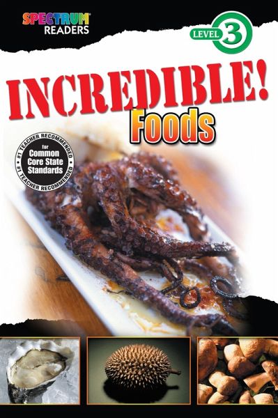 Does the thought of feasting on fish eggs make you queasy? Incredible! Foods introduces some of the unique foods that people eat around the world. The Spectrum(R) Readers are the perfect Common Core aligned tool to support the development of nonfiction reading skills crucial to a young reader's success. Each leveled reader features high-interest informational content, exciting full-color photo illustrations and Common Core aligned comprehension practice focused on the development of critical thinking skills. This multilevel series is the perfect addition to any library at school or home.