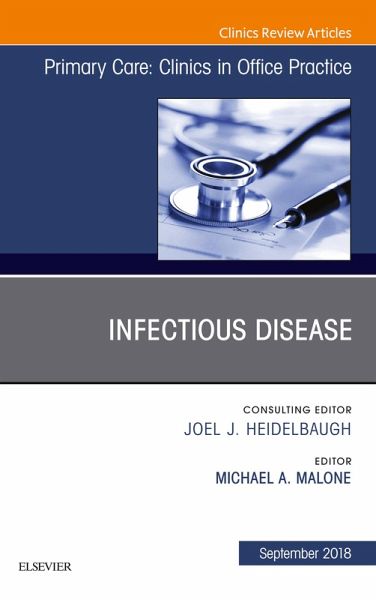 This issue of Primary Care: Clinics in Office Practice, guest edited by Dr. Michael Malone, is devoted to Infectious Disease. Articles in this issue include: Tick-borne Illnesses; Mosquito-Borne Diseases; Mite and Bed Bug Infections; Pertussis; Skin and Soft Tissue Infections; UTI Antibiotic Resistance in the U.S; Emergence of Global Antibiotic Resistance; Guidelines for the Evaluation and Treatment of Pneumonia; Common Central Nervous System Infections; Common Gastrointestinal Infections; Role of Complimentary and Alternative Therapies in Infectious Disease; Health Guidelines for Travel Abroad; Aquatic Infections; and Infections During Pregnancy.