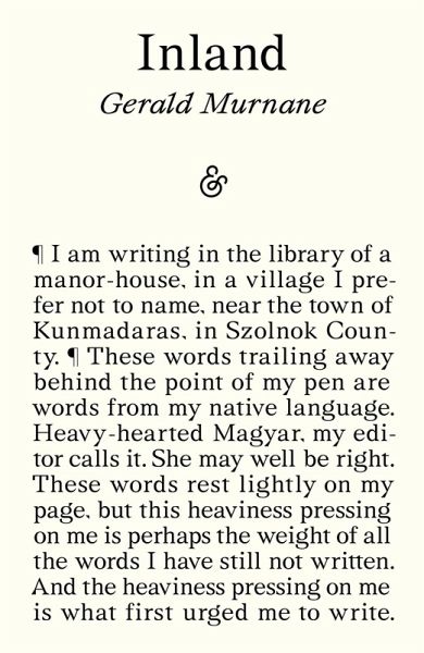 Inland is a compact story or group of stories, each nested within another, nonetheless opening onto a seemingly endless fractal geography, where the interior of Australia, the Midwestern prairie, and the Hungarian Alfold merge, imitate, and enfold one another in the mind of a man sitting alone in a room full of books.