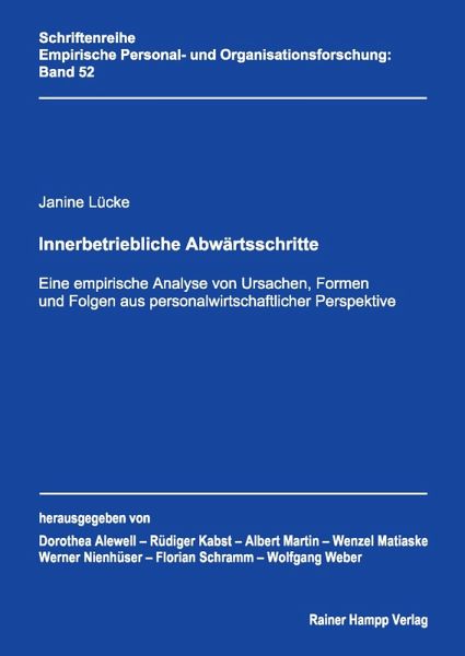 Eingebettet in die Diskussion über flexible Arbeitsverhältnisse betrachtet diese Arbeit innerbetriebliche Abwärtsschritte aus personalwirtschaftlicher Perspektive und entwickelt ein empirisch begründetes Modell auf Basis qualitativer Interviews mit Personalmanagern. Daraus resultierende Wirkungszusammenhänge werden anhand des Sozioökonomischen Panels auf Individualbasis untersucht. Es zeigt sich, dass interne Abwärtsschritte der Flexibilisierung interner Arbeitsmärkte dienen, dabei jedoch stabilisierenden Charakter in Form von Arbeitsplatzerhalt und Vermeidung von Fehlbesetzungen haben. Durch die Anwendung personalwirtschaftlicher Handlungsstrategien können negative Folgen für Unternehmen und Mitarbeiter abgewendet werden.