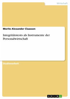 Studienarbeit aus dem Jahr 2007 im Fachbereich Führung und Personal - Sonstiges, Note: 2,0, Leuphana Universität Lüneburg, Veranstaltung: Personalwirtschaftliche Instrumente und ihre Gestaltung , Sprache: Deutsch, Abstract: Der Integritätstest ist ein Instrument der Personalwirtschaft und dient der Berufseignungsdiagnostik. Er wurde zu dem Zweck entwickelt, die Integrität eines Bewerbers zu messen und somit ein mögliches schädigendes Verhalten am Arbeitsplatz vorhersagen zu können (Ones et al. 2001). Integritätstests sind ausschließlich kommerziell genutzte Instrumente zur Personalauswahl (Marcus et al. 1997). Wie bei allen eignungsdiagnostischen Verfahren wird durch Integritätstests versucht, die Personalauswahl gegenüber einer Zufallsauswahl oder alternativen Instrumenten zu verbessern (Marcus 2000). In den USA werden Integritätstests zur Personalauswahl bereits seit ca. 50 Jahren eingesetzt und heutzutage bei ca. 50 Prozent der Bewerbungsverfahren durchgeführt. Es gibt über 40 verschiedene Verfahren. In Deutschland ist die Messung der Integrität noch nicht so populär: Die ersten Tests wurden Ende der 1990er Jahre angewendet, die Einsatzhäufigkeit liegt bei unter 1 Prozent. Jedoch soll der Einsatz der Tests in den nächsten Jahren stark zunehmen (Frintrup et al. 2004).