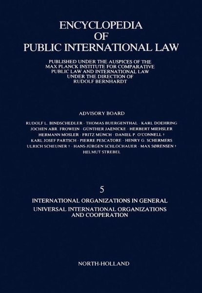 Encyclopedia of Public International Law, 5: International Organizations in General, Universal International Organizations, and Cooperation focuses on international governmental organizations and international cooperation of a universal nature. The publication first elaborates on bank for international settlements, Bretton Woods Conference (1944), Customs Cooperation Council, Dumbarton Oaks Conference (1944), financial institutions, and food and agriculture organization of the United Nations. The text then examines industrial property and international protection, Intergovernmental Committee for Migration, international administrative unions, and the International Air Transport Association. Discussions focus on traffic conferences, international protection of intellectual property, historical evolution of legal rules, special legal problem, and evaluation. The manuscript takes a look at the World Intellectual Property Organization, World Health Organization, World Food Council, voting rules in international conferences and organizations, and the Vienna Convention on the Representation of States in their Relations with International Organizations of a Universal Character. Topics include methods of voting, membership, decision-making, foundation and legal basis, functioning, and financing. The text is a valuable source of information for researchers interested in international governmental organizations and international cooperation.