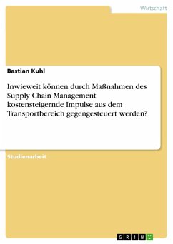 Studienarbeit aus dem Jahr 2001 im Fachbereich BWL - Handel und Distribution, Note: 1,0, Universität der Bundeswehr München, Neubiberg (Logistik), Veranstaltung: Produktion und Logistik, Sprache: Deutsch, Abstract: In der heutigen Zeit hängt der Erfolg von Unternehmen entscheidend davon ab, wie gut die einzelnen Elemente der Wertschöpfungskette aufeinander abgestimmt sind. Immer kürzere Produktlebenszyklen, permanente Innovationen und die zunehmende Liberalisierung des Welthandels bei gleichzeitigen steigenden Kosten kennzeichnen den Markt. Um in diesem Wettbewerbsumfeld erfolgreich zu sein, ist die prompte Erfüllung der Kundenwünsche ebenso wichtig wie die hohe Qualität der Produkte und konkurrenzfähige Preise. Das Supply Chain Management stellt zur Zeit das erfolgsversprechendste Konzept dar, um dieser Marktumwelt zu begegnen. Denn wichtig ist die genaue Abstimmung der unterschiedlichen Erfolgsfaktoren zur Optimierung der Wertschöpfungskette. Die vorliegende Arbeit soll am Beispiel der gestiegenen Transportkosten die Optimierungspotenziale des Supply Chain Management zur Kostenreduzierung aufzeigen. Es wird untersucht, ob und in wieweit das Supply Chain Management dazu in der Lage ist. Dabei wird wie folgt vorgegangen: Im zweiten Kapitel werden die Transportkosten durchleuchtet. Dabei wird aufgrund der hohen Dynamik in der Entwicklung der Straßeninfrastruktur nur dieser Transportweg näher betrachtet. Im Detail werden die Kostentreiber dargestellt, untersucht und deren Einfluss auf die Transportbranche betrachtet. In Kapitel drei findet eine kurze Einführung in das Supply Chain Management statt. Dabei wird zum einen die Begrifflichkeit geklärt und zum anderen das Konzept in den Gesamtzusammenhang eingeordnet. Im vierten Kapitel wird eine Darstellung der Maßnahmen des Supply Chain Management für die Logistikbranche vorgenommen. Im einzelnen werden detaillierte Maßnahmen auf allen Planungsebenen vorgestellt. Im fünften Kapitel findet eine abschließende Bewertung der Wirksamkeit von Maßnahmen des Supply Chain Management bezüglich der Kosteneinsparpotenziale statt.