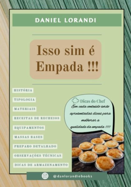 Isso Sim é Empada !!! É o E-book perfeito. Baseado na experiência de mais de 20 anos na área da gastronomia, Daniel Lorandi mostra todos os segredos de se produzir a melhor empada. Apresenta receitas de massas e recheios - salgados e doces. Também, fotos detalhadas do passo a passo da montagem da empada.