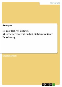 Studienarbeit aus dem Jahr 2015 im Fachbereich BWL - Unternehmensführung, Management, Organisation, Note: 2,7, Universität Kassel, Sprache: Deutsch, Abstract: Stimmt das Sprichwort "Nur Bares ist Wahres" im Zusammenhang mit der Motivation von Arbeitnehmern? Oder können auch Lob und Anerkennung für Menschen eine Art der Belohnung darstellen? Die Motivation der Arbeitnehmer spielt für Unternehmen eine enorme Rolle. Oftmals hängt der Unternehmenserfolg entscheidend davon ab. Daher wird sich in der Arbeits- und Organisationspsychologie schon seit vielen Jahrzehnten mit dem Thema der Arbeitsmotivation beschäftigt. Hierbei wurden zahlreiche Studien durchgeführt, die Erkenntnisse über ein motiviertes Handeln von Arbeitnehmern gebracht haben. Auf dessen Basis wurden im Laufe der Jahre immer neue Techniken entwickelt, mit dessen Hilfe die Arbeitsmotivation gesteigert werden kann. Wenn man überlegt wie Arbeitnehmer motiviert werden können, denkt man zunächst immer an eine finanzielle Belohnung. Es stellt sich die Frage, ob es auch Motivationseffekte bei einer nicht monetären Belohnung gibt und ob diese Motivationseffekte vielleicht sogar größer sind als die Effekte bei einer monetären Belohnung. In dieser Arbeit werden zunächst die grundlegenden Begriffe "Motiv", "Anreiz" und "Motivation" erklärt, auch wird darauf eingegangen, was man unter "Arbeitsmotivation" versteht. Weiterhin werden die verschiedenen Anreizsysteme vorgestellt. Im Hauptteil wird dann auf die Hierarchie der Motive von Maslow, die Zwei-Faktoren-Theorie von Herzberg sowie auf das Cafeteria System eingegangen. Anschließend werden die Ergebnisse der Gallup-Studie sowie einer eigens von dem Verfasser/der Verfasserin der Arbeit durchgeführten Studie dargestellt. Ein abschließendes Fazit rundet die Arbeit ab.