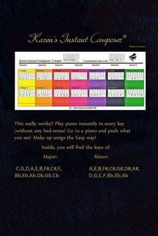 A color coded display of each chord directly on the piano--- makes it very easy to see and play every chord in the key-