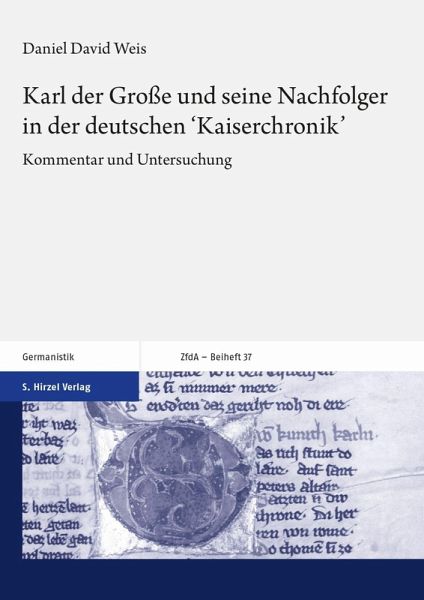 Karl der Große ist eine zentrale Figur in der deutschen Literatur des Mittelalters. Dessen Geschichte wird erstmals in der frühmittelhochdeutschen 'Kaiserchronik' breiter ausgeführt. Dabei handelt es sich nicht um ein trockenes Nacherzählen mittelalterlicher Quellen, sondern um eine lebhafte Erzählung, die Karl, in der für diese Chronik typischen Vermengung von facta und ficta, zum ultimativen Referenzpunkt für die 'deutschen' Kaiser und Könige macht. Die 'Kaiserchronik' zählt zu den wichtigsten Texten des deutschsprachigen Mittelalters. Ihre älteste Fassung A erfuhr im Laufe der nächsten vier Jahrhunderte zwei weitere Bearbeitungsstufen (B und C). Daniel David Weis betrachtet vor diesem Hintergrund die Handschriften der Redaktionen A, B und C. Neben Karl werden auch die Kaiser Ludwig der Fromme, Lothar I., Ludwig der Deutsche und Konrad III. erstmals ausführlich in einem Stellenkommentar nebst Anhang erschlossen und im Untersuchungsteil mit den beiden anderen Redaktion B und C kontrastiert.