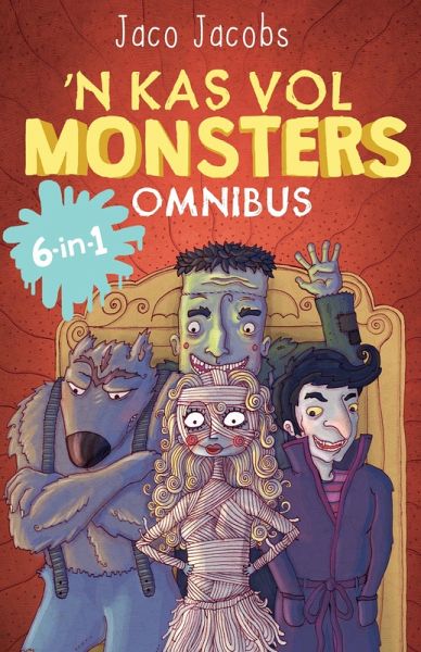 Is jy braaf genoeg om die kas oop te maak? Denver se kas is 'n geheime ingang na 'n kasteel vol monsters en hope avontuur! Maak die kasdeure wawyd oop met hierdie 6-in-1 omnibus van al die gewilde Kas Vol Monsters-boeke! Die Groen Hand. Daar is iets vreemds aan die nuwe huis ... In die middel van die nag hoor Denver iemand aan sy kasdeur klop. Toe hy ondersoek instel ontdek hy iets wat sy hare laat regop staan! Maar gaan enige iemand hom glo as hy vertel wat hy gesien het? Vampierfoto's. Die kas in Denver se kamer is die geheime ingang na 'n kasteel vol monsters. Denver en Meyer kan nie wag om weer die monsters te sien nie. Hierdie keer het een van die monsters hulp nodig. Maar om foto's van 'n vampier te neem ... kan 'n pyn in die nek wees! Hollywood-mummie. Dit is glad nie so maklik om 'n Hollywood-ster te word nie veral nie as jy 'n mummie is nie. Sal Denver en Meyer vir Toets kan help om 'n rol in 'n fliek los te slaan? Weerwolfprobleme. Denver en Meyer het al hope pret saam met die monsters gehad. Maar daar is iets fout in die monsterkasteel. Flaffie die weerwolf is in 'n BAIE slegte bui. En as 'n weerwolf vies is - moet jy liewer nie met hom sukkel nie ... Die perfekte monster. Een van die monsters in die kas het Denver en Meyer se hulp nodig. Frank is eensaam. Daarom besluit hy dis tyd om 'n meisie te kry. Maar om die perfekte meisie vir 'n groot groen monster te kry is glad nie so maklik nie! Kinderspeletjies. Al die monsters is op pad na 'n musiekkonsert. Denver en Meyer bied aan om 'n aand lank baba-oppassers vir 'n oulike monsterbaba te wees. Hulle moet met hom speel hom kosgee en hom in die bed sit. Hoe moeilik kan dit nou eintlik wees ...?