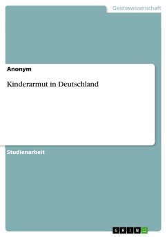 Studienarbeit aus dem Jahr 2022 im Fachbereich Soziologie - Kinder und Jugend, Note: 2,33, Pädagogische Hochschule Karlsruhe, Veranstaltung: Diversität, Sprache: Deutsch, Abstract: In der vorliegenden Hausarbeit wird das Thema Kinderarmut in Deutschland behandelt. Es wird erläutert, was Kinderarmut eigentlich bedeutet und welche Risikofaktoren es gibt. Welche Auswirkungen es auf die Betroffenen hat und was man tun kann, der Kinderarmut entgegenzuwirken.