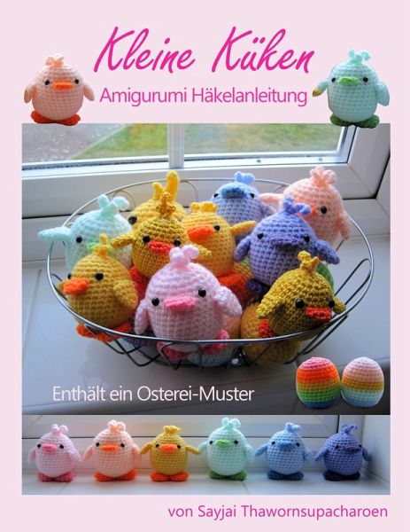Diese Küken sind niedlich und ganz einfach zu häkeln. Man braucht nur einen Rest Wolle und weniger als zwei Stunden für ein Küken. Die mittelgroßen Küken und Eier sind 7,5 cm groß. Die Größe der Küken hängt von der Größe der Häkelnadeln und der Garnstärke ab und davon, wie fest sie ausgestopft werden. Eine größere Häkelnadel und dickeres Garn haben eine größere Puppe als Ergebnis. Eine fester ausgestopfte Puppe ist größer als eine, die nur locker ausgestopft ist. Für das große Küken habe ich mitteldicke Wolle und eine 5 mm Häkelnadel benutzt und den Faden doppelt genommen. Für die mittlegroßen Küken hake ich mitteldickes Garn und eine 4 mm Häkelnadel mit nur einem Faden gehäkelt. Für die kleinsten Küken habe ich Baumwollhäkelgarn (125 m / 50 g) und eine 3 mm Häkelnadel genommen. Abkürzungen: LM = Luftmasche, FM = feste Masche, M = Masche, KM = Kettmasche, R = Runde, zus = zusammen.