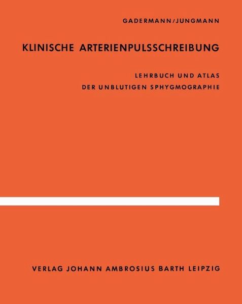 Allgemeiner Teil.- I. Einführung.- II. Zur Methodik der Pulsschreibung.- III. Die normale Pulsform und ihre Entstehung.- IV. Die pathologischen Formkriterien des Pulses.- V. Die Pulswellengeschwindigkeit.- VI. Der elastische Kreislaufwiderstand E'.- Klinischer Teil.- VII. Alters Veränderungen des Pulses.- VIII. Arteriosklerose.- IX. Endangiitis obliterans.- X. Hypertonie.- XI. Gefäßanomalien.- XII. Herzfehler.- XIII. Pericardverschwielung.- XIV. Rhythmusstörungen und Leitungsstörungen des Herzens.- XV. Endokrine Erkrankungen.- XVI. Regulationsstörungen des Kreislaufs.- XVII. Spezielle Einwirkungen auf den Kreislauf.- Literatur.- Register.