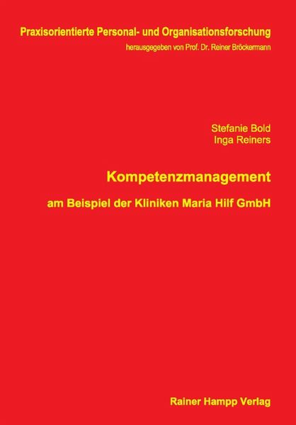 Wie geht man mit Mitarbeiterkompetenzen um? Wieso ist das Kompetenzmanagement für das Personalmanagement im Unternehmen wichtig? Dieses Buch verschafft den Lesern einen breiten Überblick über die theoretischen Grundlagen eines Kompetenzmanagements und zeigt am Beispiel der Kliniken Maria Hilf GmbH die Erarbeitung eines Konzeptes sowie dessen praktische Umsetzung. Es werden Einsatzfelder im Personalwesen sowie relevante Erfolgsfaktoren für das Kompetenzmanagement aufgezeigt. Stefanie Bold, B.A., studierte an der HS Niederrhein den Bachelor-Studiengang Business Administration mit den Schwerpunkten Personalwirtschaft sowie Organisation und Informationsmanagement. Sie war bereits studienbegleitend in der Kliniken Maria Hilf GmbH beschäftigt und beginnt nach der Bachelorprüfung ein Masterstudium. Inga Reiners, B.A., absolvierte im Anschluss an eine kaufmännische Ausbildung an der HS Niederrhein den Bachelor-Studiengang Business Administration mit den Schwerpunkten Personalwirtschaft sowie Organisation und Informationsmanagement. Nach der bestandenen Bachelorprüfung arbeitet sie als Trainee im Personalbereich der Kliniken Maria Hilf GmbH.