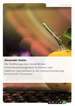 Diplomarbeit aus dem Jahr 2011 im Fachbereich BWL - Unternehmensführung, Management, Organisation, Note: 1,7, AKAD-Fachhochschule Leipzig, Sprache: Deutsch, Abstract: "Gesundheit ist nicht alles - ohne Gesundheit ist aber alles nichts". Dieses berühmte Zitat von Arthur Schopenhauer beschreibt die immense Bedeutung der Gesundheit des Menschen für dessen Wohlbefinden, aber auch dessen Leistungsfähigkeit. Die Bedeutung der Gesundheit haben mittlerweile viele Unternehmen erkannt und leistungsfähige Mitarbeiter als eine der wichtigen Ressourcen zum Betriebserfolg erfasst. Zukünftig wird es aufgrund des demografischen Wandels und des drohenden Fachkräftemangels für Unternehmen noch schwieriger, den Bedarf an qualifizierten Mitarbeitern zu decken. Die Erhaltung und Wiederherstellung der Gesundheit der im Unternehmen tätigen Mitarbeiter ist demzufolge immer wichtiger. Eine Möglichkeit, den hieraus resultierenden Problemen zu begegnen, stellt das betriebliche Gesundheitsmanagement (BGM) dar. Aufgrund der Vielschichtigkeit und Komplexität dieses Themas gibt es eine große Anzahl an Modellen und Vorgehensweisen in den Unternehmen. Festgelegte Standards oder anerkannte Regeln existieren für diesen Themenbereich aber gerade nicht. Es lässt sich vielmehr der Eindruck gewinnen, dass es sich um die Anwendung von Teilaspekten des BGM handelt, die teils nicht einmal aufeinander abgestimmt sind. Erklären lässt sich dies wohl auch damit, dass die Vorstellungen über das BGM teils sehr diffus, jedenfalls aber sehr unterschiedlich sind. Hinzu kommen verschiedene individuelle Bedürfnisse, die einzelne Unternehmen an das BGM stellen. Auch diese machen die Ein- und Durchführung eines BGM sehr kompliziert. Die aufgeführte Problematik stellt in ganz besonderem Maße die kleinen und mittleren Unternehmen (KMU) vor große Schwierigkeiten, da eine Übertragung der bewährten Konzepte und Strategien von großen Unternehmen nicht möglich ist. An der oben geschilderten Problematik setzt die vorliegende Arbeit an. Wie gezeigt ist bisher nicht ausreichend systematisch, unter Zugrundelegung einer wissenschaftlichen Ansprüchen genügenden Methodik untersucht worden, welches der aktuelle Stand bei der Durchführung und Anwendung des BGM in KMU ist. Aufgrund dieser bisher schwammigen Basis fehlt es zugleich an konzeptionellen Ausarbeitungen eines in sich stimmigen und effektiven BGM, das einerseits der erforderlichen Systematik, andererseits aber zugleich auch den individuellen Bedürfnissen der KMU Rechnung trägt. [...]