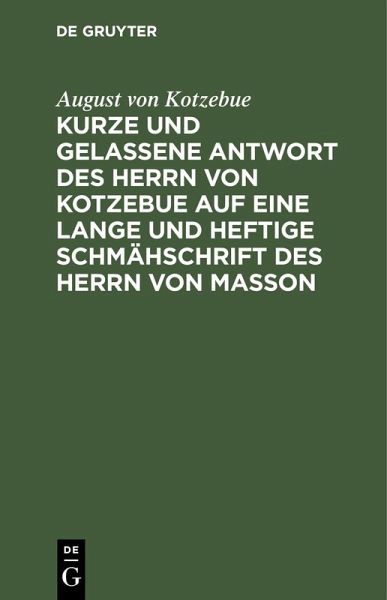 Keine ausführliche Beschreibung für "Kurze und gelassene Antwort des Herrn von Kotzebue auf eine lange und heftige Schmähschrift des Herrn von Masson" verfügbar.