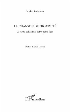 Convaincu que la magie s'opere avant tout dans un cadre de proximite, l'auteur presente ici une analyse historique et actuelle des caveaux, cabarets et autres salles conviviales, a la fois berceaux et refuges des artistes majeurs de la Chanson d'hier et de demain. C'est une plongee au c?"e;ur de la Chanson authentique, vivante, eternelle, celle qui echappe aux contraintes et au formatage. Tendre, drole ou rebelle, la Chanson est un acteur de la culture, surtout lorsqu'on l'ecoute !