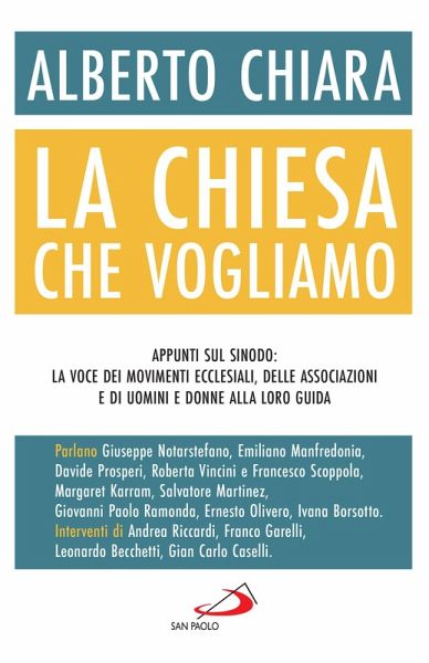 È il Paese dei capelli bianchi e delle culle vuote. Che fatica ad accettare Dio, fa spallucce davanti al Vangelo e spesso s'arrabbia quando sente parole come solidarietà e accoglienza. Quali spazi, quale ruolo e quale futuro può avere la Chiesa in Italia? Di tutto questo deve (dovrebbe) occuparsi il Sinodo. Il tempo non manca: si andrà avanti fino al 2025. Ma le idee? Alberto Chiara ha dialogato con donne e uomini che, da credenti, abitano il mondo: Giuseppe Notarstefano (Azione Cattolica) Emiliano Manfredonia (Acli) Davide Prosperi (Comunione e Liberazione) Roberta Vincini e Francesco Scoppola (Agesci) Margaret Karram (Movimento dei focolari) Salvatore Martinez (Rinnovamento nello Spirito Santo) Giovanni Paolo Ramonda (Comunità Papa Giovanni XXIII) Ernesto Olivero (Sermig) Ivana Borsotto (Focsiv). A questi incontri, in cui ciascuno si esprime con grande franchezza e intensità, seguono quattro preziosi commenti dello storico Andrea Riccardi, del sociologo Franco Garelli, dell'economista Leonardo Becchetti e del magistrato Gian Carlo Caselli.