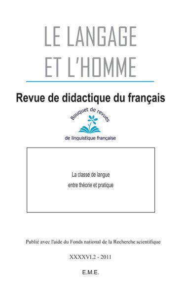 Dossier : La classe de langue entre théorie et pratique / Fatima Chnane-Davin : Présentation du dossier / I. L'élève et la construction de compétences plurielles - Marie-Laure Barbier : Du bilinguisme en général et de la "bilitéracie" en particulier / Robert Bouchard : "Enfants nouvellement arrivés en France", compétence scolaire et littératie académique / Raffaele Spiezia : La lisibilité et la didactique du français langue étrangère : considérations théoriques et pratiques...