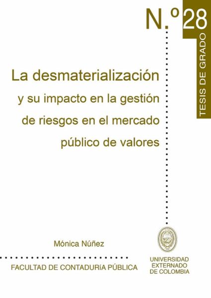 En este trabajo se analiza la desmaterialización y su impacto en la gestión de riesgos en el mercado público de valores.Para mayor información, por favor consulte la tabla de contenido. Para mayor información, por favor consulte la tabla de contenido.