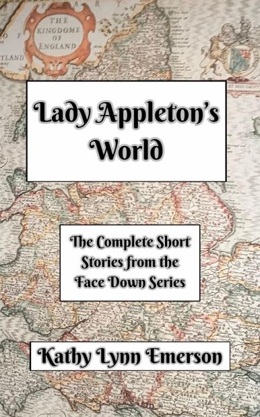 Lady Appleton's World: The Complete Short Stories is a collection of sixteen short stories first published between 1999 and 2015 and newly edited by the author. They feature the adventures of Susanna, Lady Appleton, sixteenth-century gentlewoman, herbalist, and sleuth, and other characters from Kathy Lynn Emerson's ten-book Face Down Mystery Series. This is the first time all sixteen have appeared in a single volume. Illustrated with eight pen and ink drawings by Linda Weatherly S and accompanied by author notes, the stories included are: "The Body in the Dovecote," "Much Ado about Murder," "The Rubaiyat of Nicholas Baldwin," "Lady Appleton and the London Man," "Lady Appleton and the Cautionary Herbal," "The Riddle of the Woolsack," "Lady Appleton and the Cripplegate Chrisoms," "Lady Appleton and the Bristol Crystals," "Encore for a Neck Verse," "Confusions Most Monstrous," "Death by Devil's Turnips," "Any Means Short of Murder," "A Wondrous Violent Motion," "Lady Appleton and the Creature of the Night," "The Curse of the Figure Flinger," and "Lady Appleton and the Yuletide Hogglers."