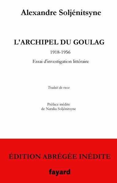 Après la publication, en 1962, de son roman, Une journée d'Ivan Denissovitch, où il dépeignait la vie d'un prisonnier du Goulag, Alexandre Soljénitsyne reçut, venus de toute la Russie, des centaines de lettres de témoignages sur les camps soviétiques. À partir de ce matériau, il composa l'Archipel du Goulag qui, lors de sa parution en Occident en 1974, suscita une prise de conscience des réalités du régime soviétique. Devenu un best-seller international, l'ouvrage fut tiré à des millions d'exemplaires avant d'être publié dans le pays de l'auteur. Publié en trois volumes aux éditions Fayard (1991-2013), l'ouvrage fait ici l'objet d'une version abrégée inédite, conformément à la version russe établie en 2010 par Natalia Soljénitsyne. Traduit du russe Édition abrégée inédite Préface de Natalia Soljénitsyne