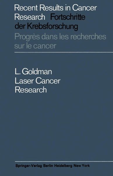 together with the oncologist. For man, the laser must be moved out of the laboratory into the operating room. At present, its true position in the cancer therapy program is not yet known. The greatest attention is being directed to melanoma because of the tremendous energy adsorption capabilities of this heavily pigmented tumor. The next area of interest is in uncommon and com mon tumors of blood vessels. Here, too, the color factor influences to a signifi cant degree the absorption of the laser. Multiple accessible malignancies are treated also by the laser chiefly to compare the effect here with other modalities of therapy. Finally, as a type of therapy of desperation, lasers are used in the treatment of metastatic lesions. This then, is the brief introduction to the study of the current status of laser cancer research. Intense, difficult and cooperative research of the next few years will determine the role of the laser, an "optical knife", as an investi gative or therapeutic instrument. T able of Contents Chapter 1 Laser Instrumentation 1 Chapter 2 Laser Protection . 8 Chapter 3 The Laser Reaction in Tissue 13 Chapter 4 Color Qualities of Tissue in Relation to Laser Radiation 16 Chapter 5 Laser Radiation of Tissue Cultures .