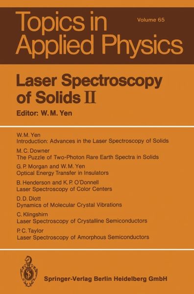 Laser-based optical spectroscopies are powerful and versatile techniques that are continuing to evolve and find new applications. This book presents reviews of recent progress in our understanding of the spectra and dynamical processes of optically excited states of condensed matter, focusing on the advances made possible by the application of laser-based optical spectroscopies. Reviews are given of the optical properties of crystalline and amorphous semiconducting materials and structures, the properties of defect centers in insulators, two-photon nonlinear processes in insulators, optical energy diffusion in inorganic materials, and relaxation in organic materials. The individual chapters emphasize the methodology common to the various investigations. The volume is designed to be suitable as an introduction to applied laser spectroscopy of solids, as well as providing an update on the status of the field.
