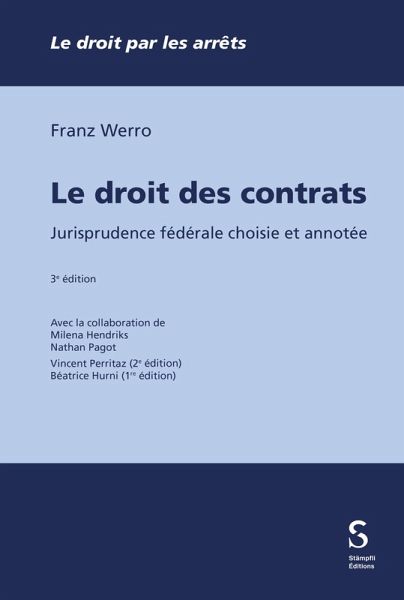 Le présent ouvrage traite le droit des contrats à partir des arrêts du Tribunal fédéral. Les arrêts choisis abordent la vie du contrat, de sa formation jusqu'à sa fin et au-delà. Ils permettent d'illustrer concrètement le droit des contrats nommés et innommés les plus courants. Par ailleurs, des notes et des questions accompagnent chaque arrêt et permettent d'en mesurer la portée. Dans sa 3e édition revue et corrigée, le livre servira les besoins des étudiant·es, à qui il tiendra lieu d'outil d'apprentissage. Il rendra service également aux praticiennes à qui il offrira un aperçu de l'essentiel de la jurisprudence du Tribunal fédéral. En plus de celle de l'arrêt, une bibliographie sélective fournit aussi des pistes utiles pour une étude plus approfondie de la matière.