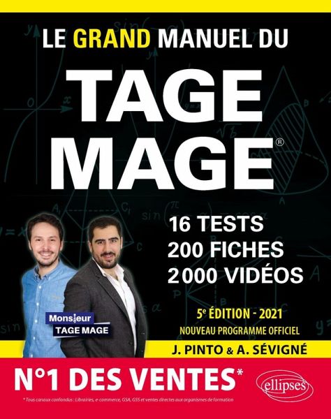 OBJECTIF : Avoir une préparation complète au TAGE MAGE pour viser les meilleurs scores. LES NOUVEAUTÉS : - 300 nouvelles questions. - 50 nouvelles astuces de calcul. - 15 plannings de révisions améliorés. - 15 nouvelles fiches de cours. LES + SUR LE FOND : - 16 tests blancs. - 200 fiches de cours + 200 vidéos de cours. - 2000 questions + 2000 corrigés en vidéo. - 100 % des questions corrigées en vidéo. - Corrigés détaillés étape par étape. - 15 plannings de révision. - Espace E-LEARNING sur www.monsieur-tage-mage.com - Une entraide dans les communautés Facebook / Instagram / Twitter / Linkedin N°1 des candidats « Monsieur TAGE MAGE » et « Monsieur Ecoles de commerce » (+ de 20 000 membres). - Chaîne Youtube N°1 en TAGE MAGE® (1 million de vues) - Concis, Clair, Complet = Pas de « blabla ». - Toutes les formules / astuces / conseils. LES + SUR LA FORME : - Ouvrage en couleur. - Auteurs 100 % disponibles par mail, Facebook et Instagram. - Fiches et questions classées par difficulté (1 à 5 étoiles). - Mise en page travaillée = Apprentissage accéléré.