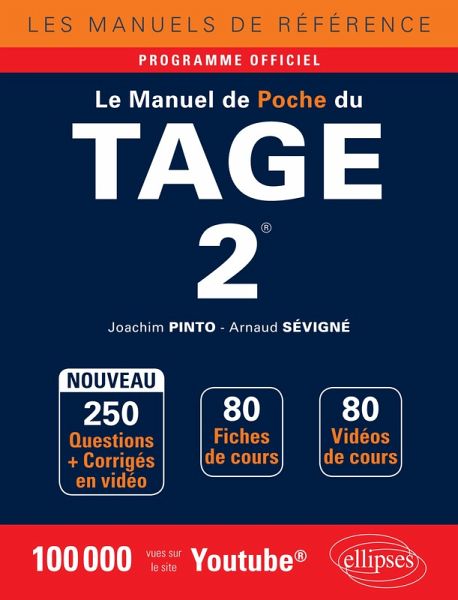Livre OFFICIEL de la prépa leader ADMISSIONS PARALLÈLES, cet ouvrage de référence écrit par Joachim PINTO (HEC Paris - Score record de 178/210) et Arnaud SÉVIGNÉ (HEC Paris) vous propose une préparation complète au TAGE 2. OBJECTIF : Avoir une préparation rapide au TAGE 2 pour viser les meilleurs scores. LES + SUR LE FOND : - 80 fiches de cours + 80 vidéos de cours. - 250 questions + 250 corrigés en vidéo. - 100 % des questions corrigées en vidéo. - Corrigés détaillés étape par étape. - 15 plannings de révision. - Espace utilisateur sur www.monsieur-tage-2.com - Groupe Facebook « Monsieur TAGE 2 » (1000 membres). - Concis, Clair, Complet = Pas de « blabla ». - Toutes les formules / astuces / conseils. LES + SUR LA FORME : - Ouvrage en couleur. - Auteurs 100 % disponibles par mail ou Facebook. - Fiches et questions classées par difficulté (1 à 5 étoiles). - Mise en page travaillée = Apprentissage accéléré.