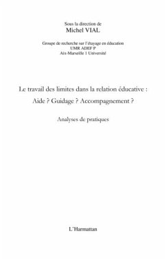 Comment le professionnel peut-il identifier les limites de la relation educative ? A quoi peut-il se reperer pour savoir ce qu'il est en train de faire et prendre la posture qui lui importe ? Ce livre s'adresse a tous ceux qui "e; font de l'education"e; parce que leur statut professionnel le leur demande, les y oblige. Les champs professionnels concernes sont la formation tout au long de la vie, le scolaire et la formation d'adultes - la Sante - le Travail social et l'insertion - la Direction de ressources humaines, le management... tous les metiers de l'humain.