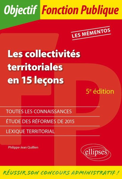 Cet ouvrage vous propose l'ensemble des connaissances territoriales requises pour réussir un concours d'entrée dans la fonction publique territoriale. Chaque leçon propose : . une fiche de onze pages clairement structurée et rédigée ; . un zoom de trois pages sur une question d'actualité ou une réforme en cours ; . un résumé en une page des dix points essentiels de la leçon ; . cinq chiffres ou dates à retenir, ou des analyses à méditer. Les nombreux apports des réformes de janvier et août 2015 sont détaillés et discutés. Pour vous apprendre à maîtriser le « parler territorial », la quinzième leçon consiste en un lexique. Cet ouvrage peut aussi intéresser les candidats aux concours des fonctions publiques étatique ou hospitalière, les étudiants en droit, les élus locaux ou tout simplement les citoyens désireux de mieux connaître et comprendre la démocratie locale.